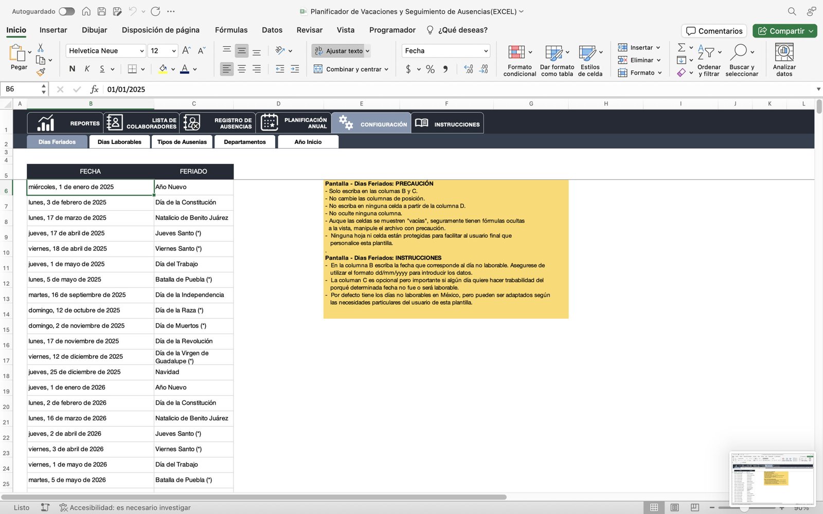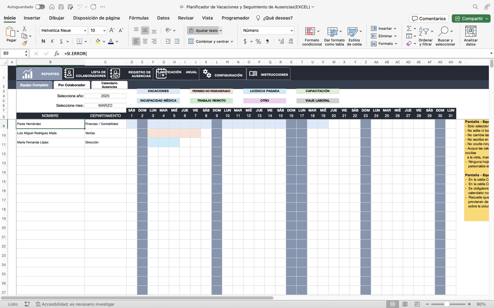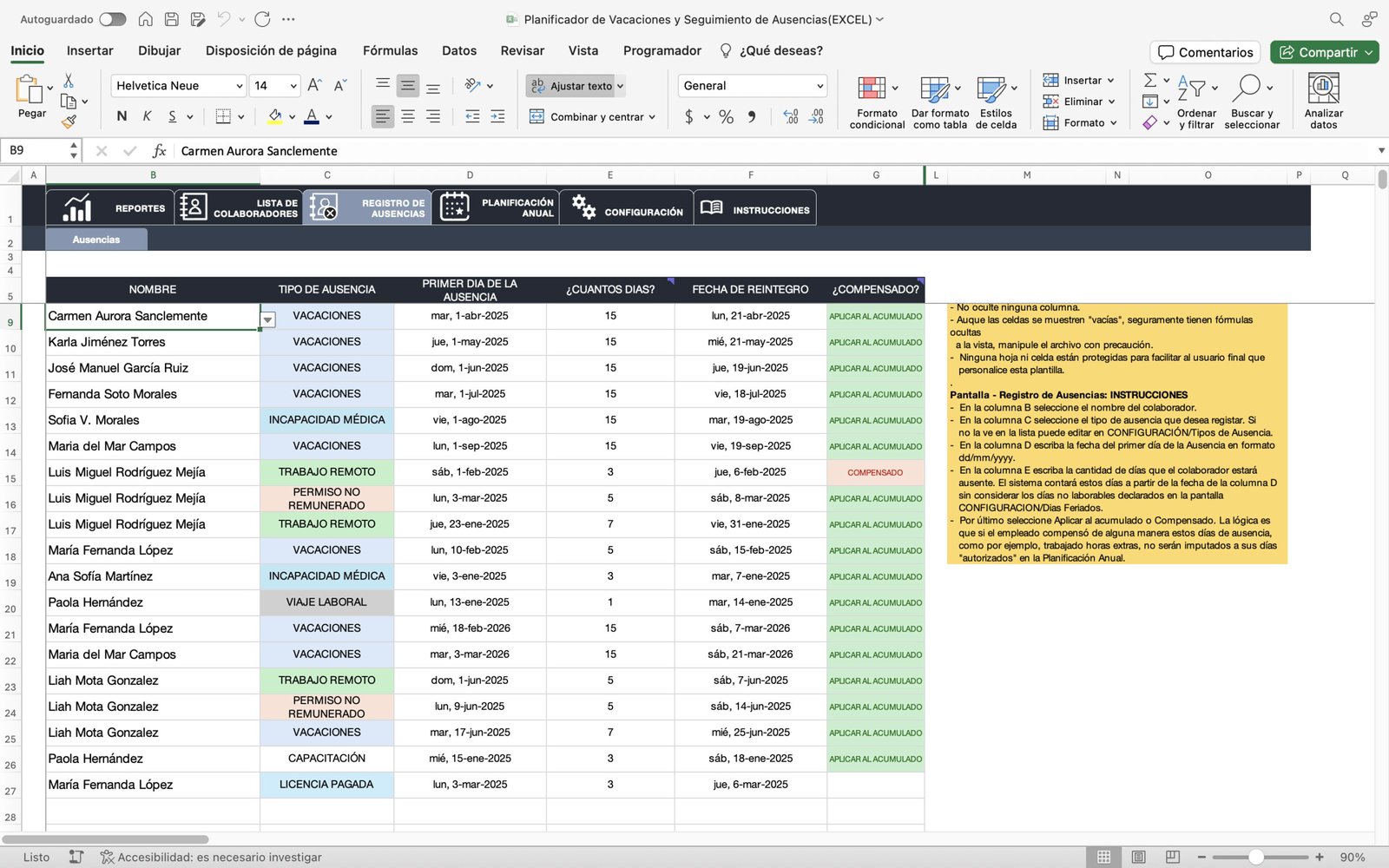 🟢 Gestor de Ausencias y Días Festivos Personalizable